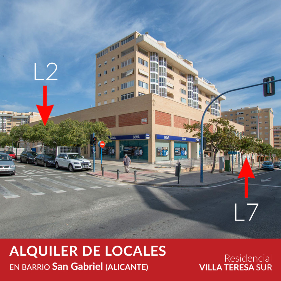 Situados en la zona alta de San Gabriel, en el Conjunto Residencial Villa Teresa Sur, donde ya viven más de 500 familias. Junto a Colegio Educación Infantil y Primaria, oficinas del BBVA y Sabadell, en un entorno comercial funcional y agradable, con amplias terrazas y gran visibilidad.